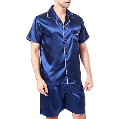 Men's Satin Pajamas Short Button-Down Pj Set Sleepwear Loungewear